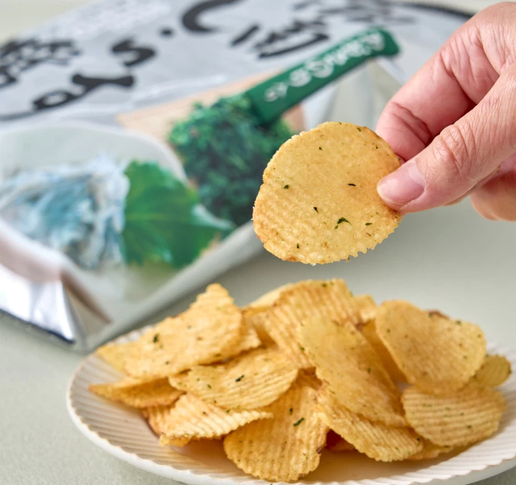湘南しらすを粉末にし、相性の良い醤油、あおさ粉と合わせた風味豊かなご当地ポテトチップです。