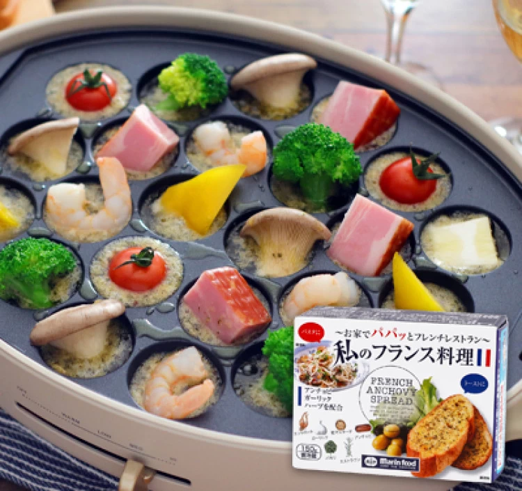 ソフトタイプのマーガリンにエシャロットやアンチョビ、ガーリックなどのスパイスをブレンドした商品です。