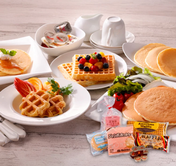 5種類、計21枚のホットケーキとワッフルが一度に味わえるお試しセット。食べ比べてお気に入りを見つけてください。