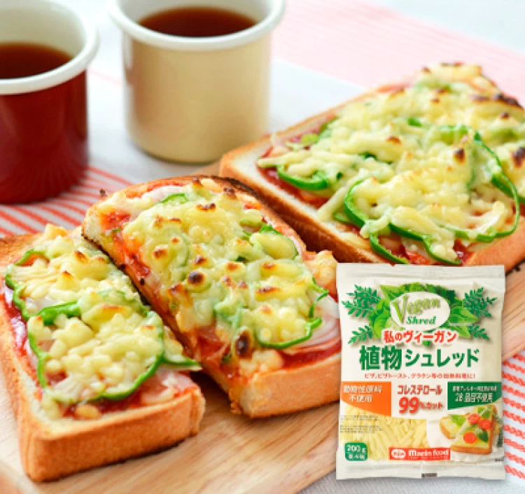 植物性の素材をベースにした、ヴィーガン対応のチーズ代替食品です。アレルギー特定原材料28品目を含まず、ゴーダチーズに比べてコレステロールを99%以上抑えています。