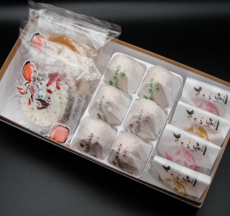 子もちたこ最中の詰合せです。3種類のお菓子が入っています。
