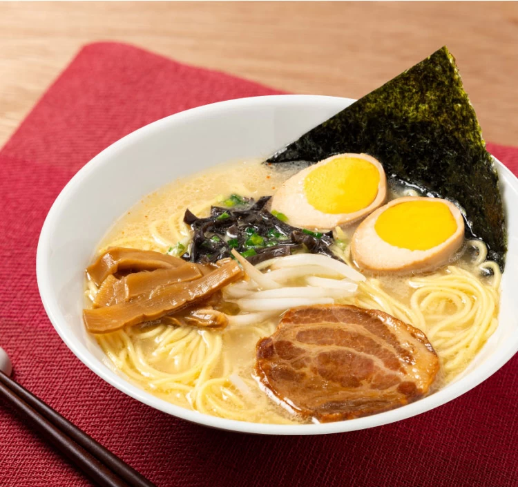 『昭和(むかし)ラーメン』と読む、具材がたっぷりの人気No1商品。チャーシュー・味付タマゴ・きくらげ・ねぎが付属されているとんこつラーメンは、イベントの景品や贈り物にもぴったり。