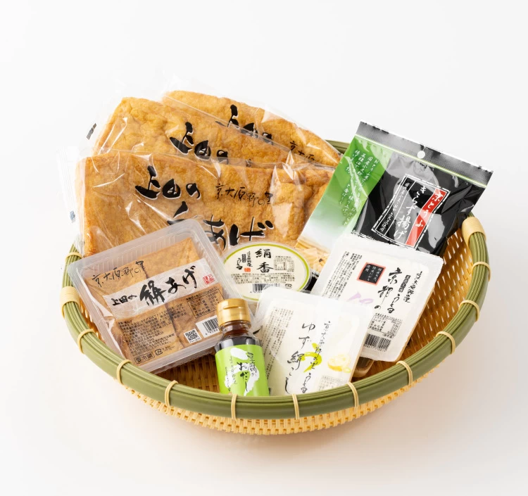 | 内容量 | 上田の手あげ ×3 ・絹あげ ・京都の絹 ・ゆず絹こし ・絹香 ・豆腐のおだし ・きらず揚げ |