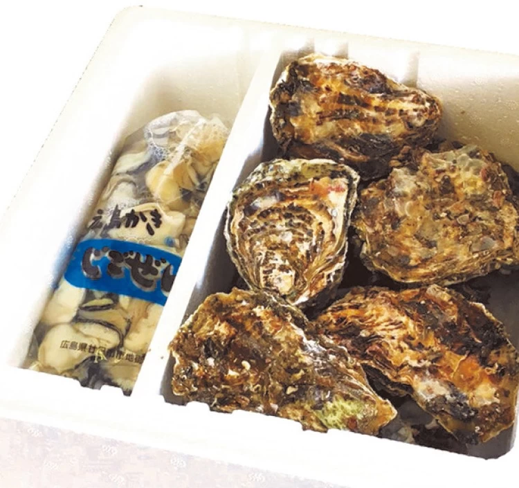 本場・広島産の牡蠣のなかでも屈指の美味しさと称される「地御前(じごぜん)かき」の生牡蠣セット。中国山地から注ぐ清流と海水が混ざり合う、プランクトンが豊富な地御前の海に浮かぶ筏を揺りかごにして育つ「地御前かき」は大粒で色艶に優れ、美肌や健康作りにも良いといわれている。世良水産では、この高品質な牡蠣をひとつずつ手作業で選別して出荷。バター焼きや牡蠣フライ、牡蠣鍋、牡蠣ご飯などで美味しくいただける。