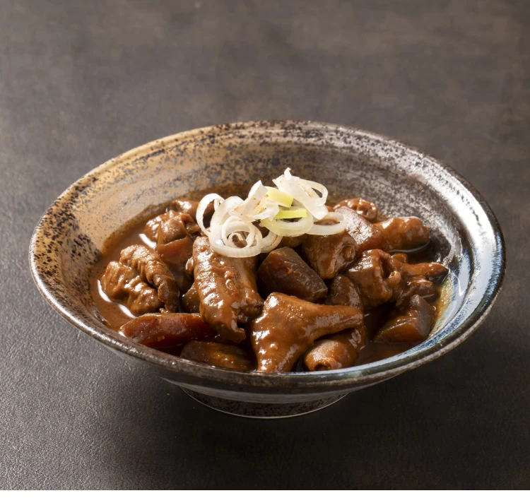 名古屋名物の「どて煮」をご自宅で楽しめます。国産の豚ホルモンとこんにゃくを秘伝の味噌でコトコト煮込み、味わい深く仕上げています。ご飯に乗せて刻みネギをかけたり、卵を絡めたりしてお召し上がりください。ビールや日本酒のアテにもどうぞ。