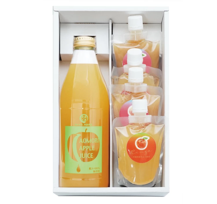 | 内容量 | ●青森りんごジュース 1L(1本) ●飲むりんごゼリー 170ml(2個) ●飲む桃ゼリー 170ml(2個) |