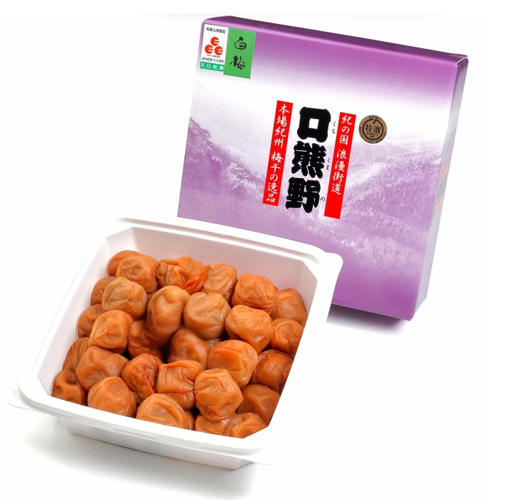 世界遺産熊野古道の玄関口「口熊野」で、紀州伝統の手法でひと粒ひと粒丁寧に漬け上げた梅干しです。ご贈答用にぴったりな「はちみつ梅」「しそ梅」「白梅」をご用意。まろやかな甘さ、さっぱりとした爽やかさ、素朴で自然の風味をいかした味わいをお楽しみいただけます。燃やせるゴミとして廃棄できる容器を使用しており、環境面にも配慮した優しい一品です。