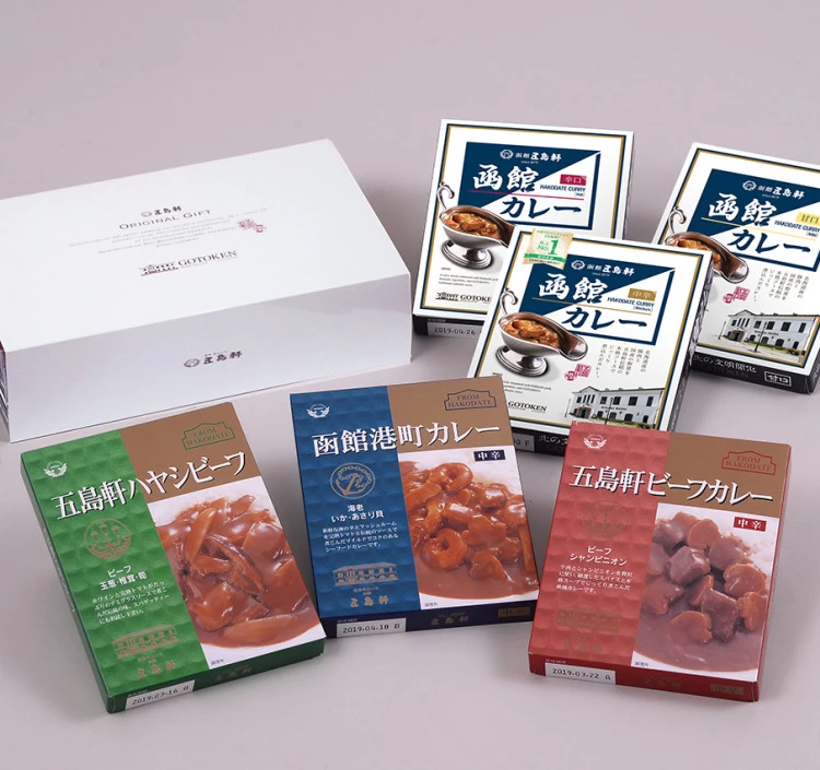 函館にある明治12年創業のレストラン「五島軒」で提供されている味を、自宅で楽しめるセット。昔懐かしい味わいの「函館カレー」の甘口・中辛・辛口の3種類に加え、本格的な欧風カレー「五島軒ビーフカレー」、魚介の旨味が詰まったシーフードカレー「函館港町カレー」、赤ワインと完熟トマトの旨味たっぷりの「五島軒ハヤシビーフ」も詰め合わせられています。いろんな味があるので、辛いものが苦手な家族や子どもがいる家庭にもおすすめです。老舗洋食レストランの料理人がこだわって作り上げた味をご堪能ください。
