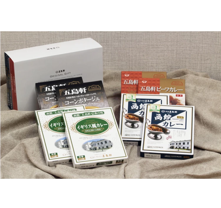 | 内容量 | イギリス風カレー 200g×2袋、函館港町カレー 200g×2袋、ビーフシチュー 200g×2袋、コーンポタージュ 180g×2袋 |