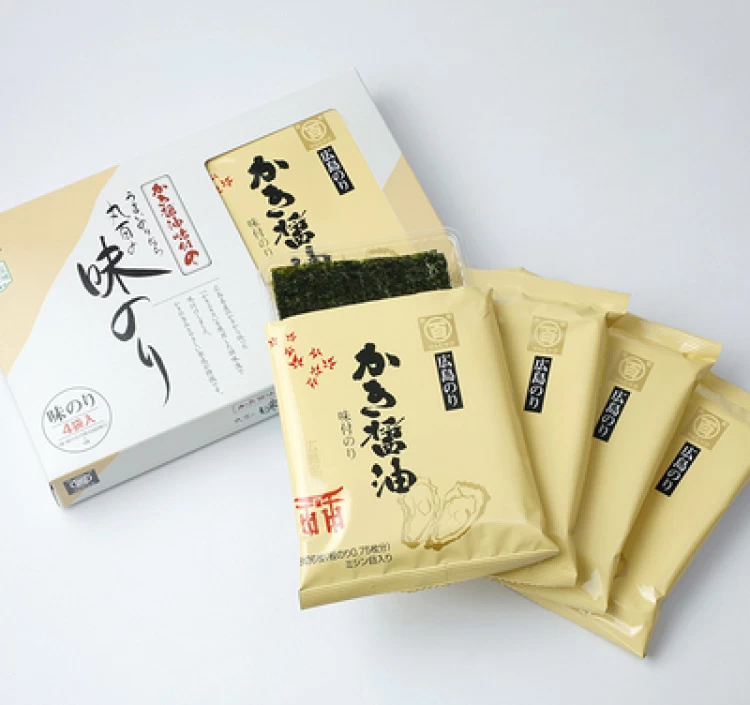 お土産にぴったりの「かき醤油味付のり」の小分けパック×4個セット。