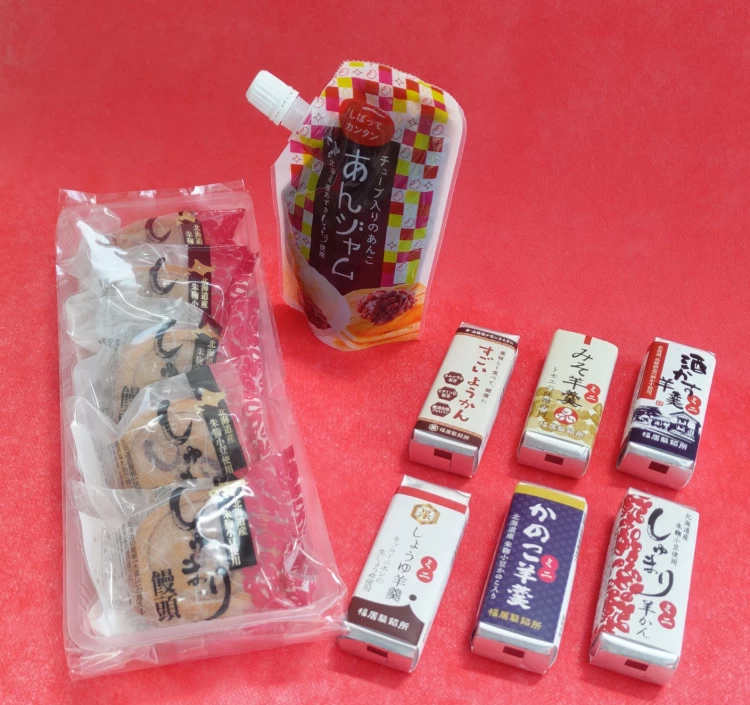 | 内容量 | しゅまり饅頭(5個入り)、あんジャム(150g)、羊羹ミニシリーズ(50g×6種) |
