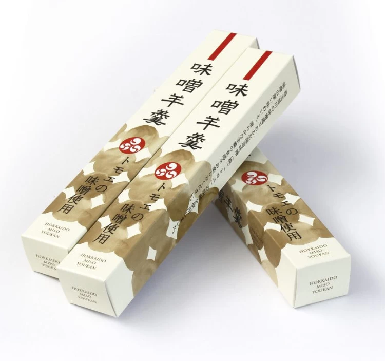 北海道・旭川の味噌蔵【トモエ】が仕込む北海道味噌と、福居製餡所のこだわりあん「しゅまり小豆」を贅沢に使用。 和の伝統素材が響き合う、ふくよかな味わいの羊羹に仕上げた。