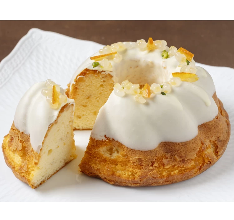 爽やかな香りのほのかな苦みが美味しいケーキ。日向夏の皮を柔らかくコトコト煮込み、果汁と共に生地に混ぜ込んでしっとりとしたクグロフに仕立てました。