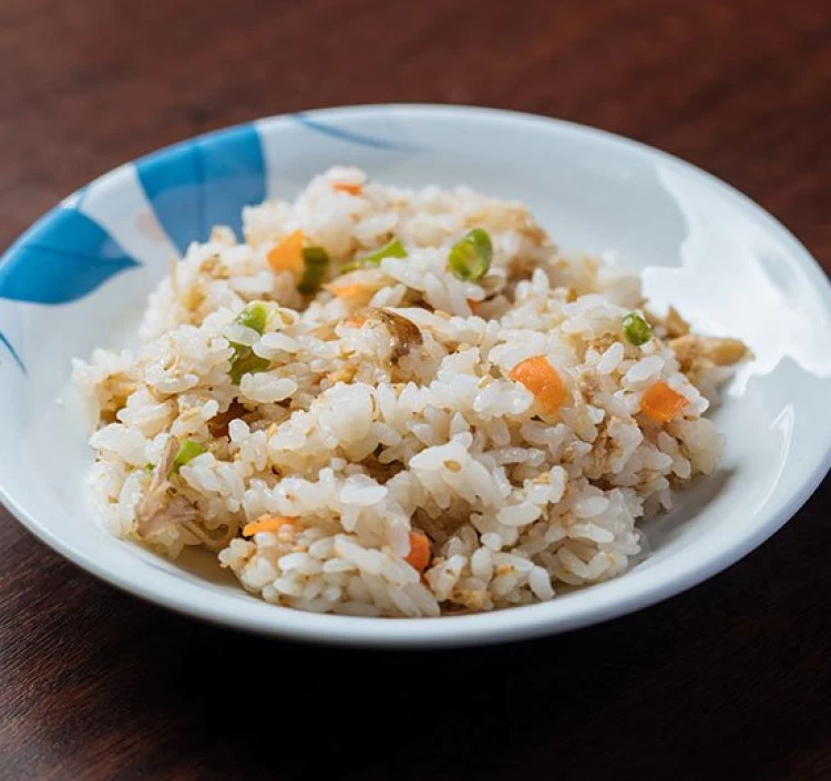 やや甘めの味付けをした、長年愛されているまぜめしです。 人参、インゲン豆、油揚げ、ゴボウ、たけのこ等を混ぜ込んでいます。