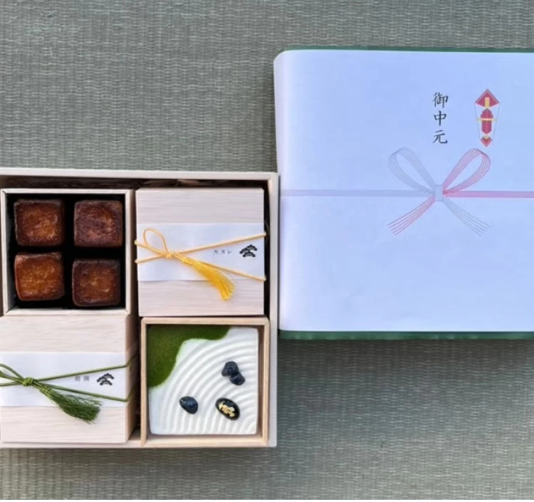| 内容量 | キュービックカヌレ4個入×2箱、庭園ティラミス×2箱 *オリジナルギフトラッピング |