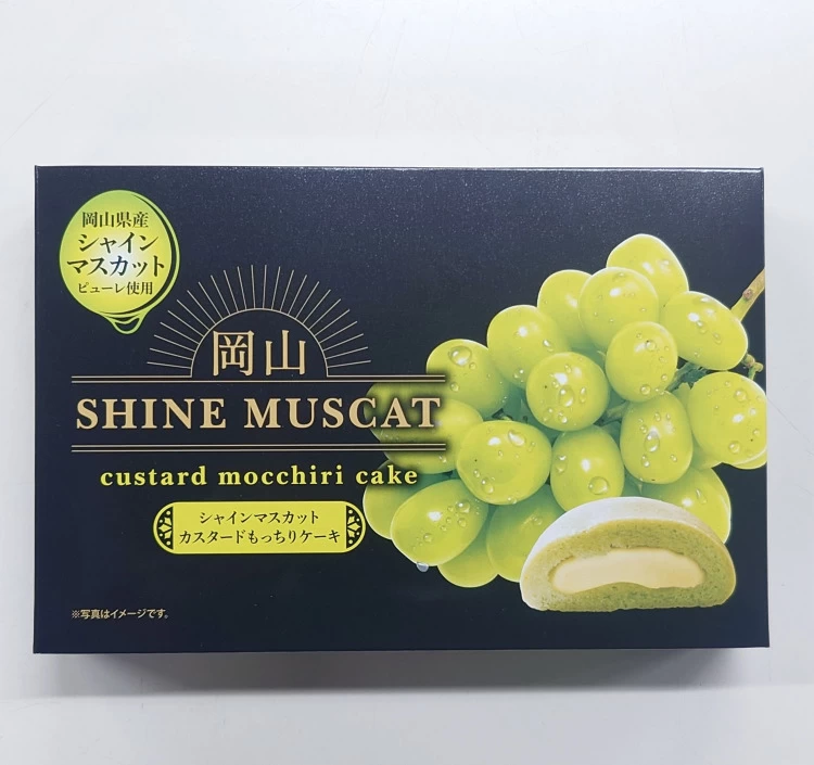・岡山県産シャインマスカットピュレを使用したもっちりしたケーキにカスタードが入っています。