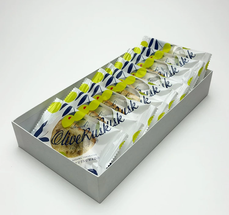 小豆島産オリーブの葉と優しい和三盆を使用し、バター風味のラスクに仕上げています。