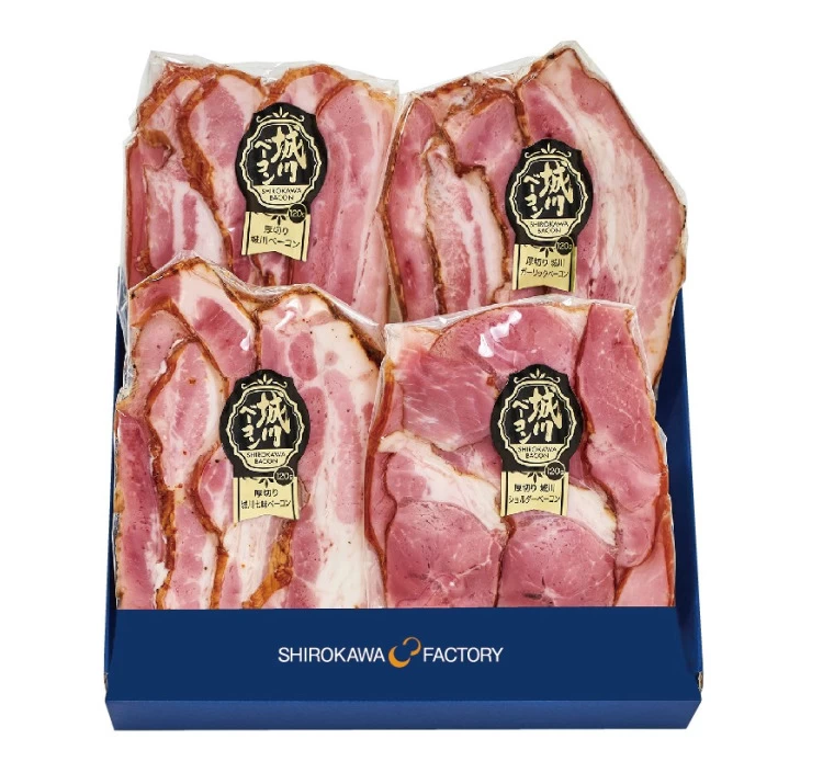| 内容量 | ・厚切り城川ベーコン(100g)・厚切り城川ガーリックベーコン(100g)・厚切り城川七味ベーコン(100g)・厚切り城川ショルダーベーコン(100g) |