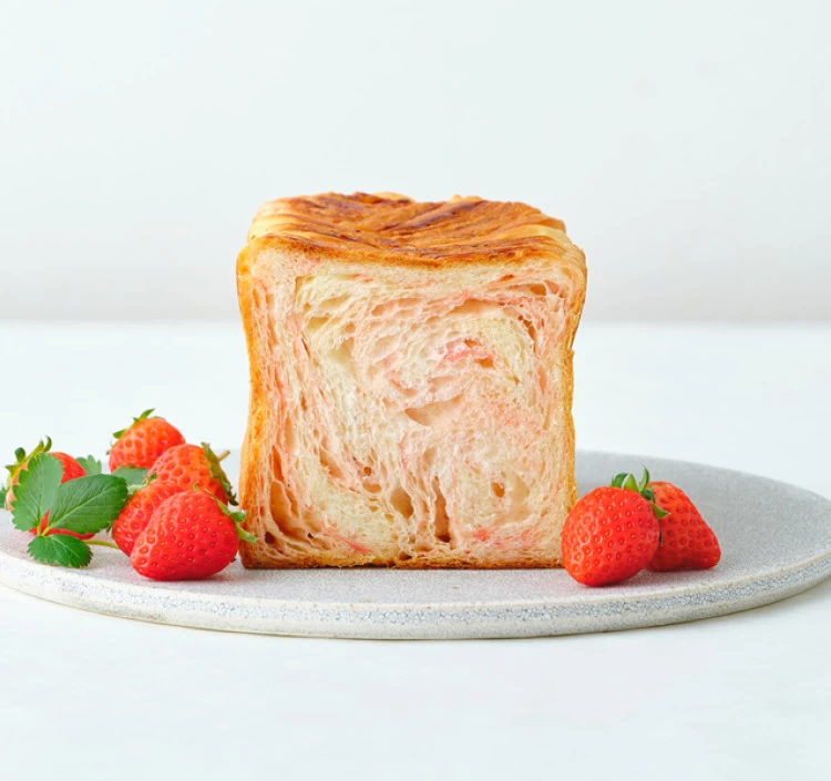 高い香り、酸味、甘さが三位一体となったあまおうを生地に織り込み自然の甘さを追求したデニッシュ食パン。子どもからお年寄りまで好かれる食パンに仕上がっています。軽くトーストすると甘さがさらに増し、おやつや朝食にぴったり。ぜひお召し上がりくださいませ。