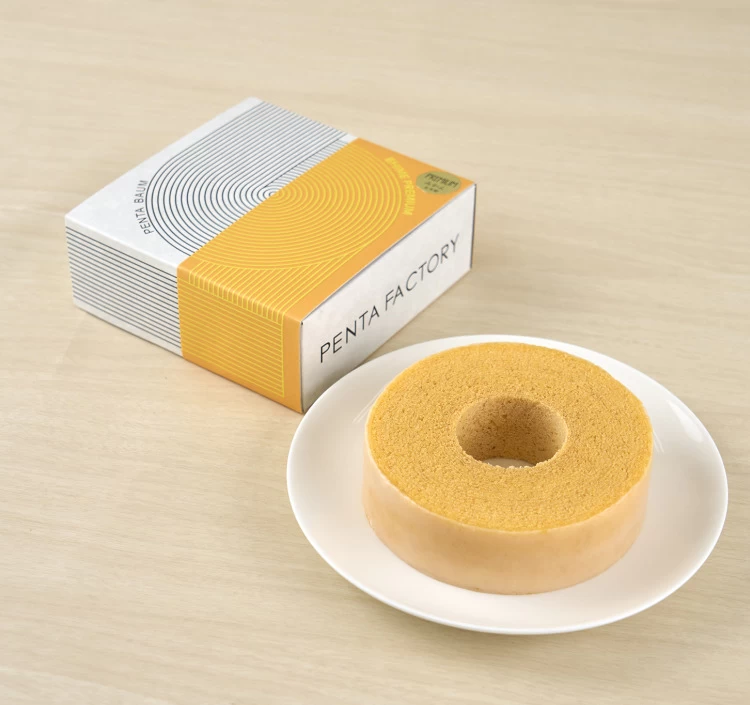 愛媛県推奨のブランド米「ひめの凛」を、鮮度の良いまま自社製粉した生米粉を100%使用した、グルテンフリーのバウムクーヘン。じっくりと焼き上げてバターの風味を閉じ込め、しっとり、もっちりとした美味しさが際立つ逸品です。愛媛県産の「みかんたまご」や温州みかんのピューレを使い、地域の恵みを活かしています。「ペンタファクトリー」は、農業を通して愛媛県西条市の魅力を発信する農業法人「ペンタファーム」の活動のひとつ。特産品を活かしたスイーツをぜひお取り寄せでお召し上がりください。
