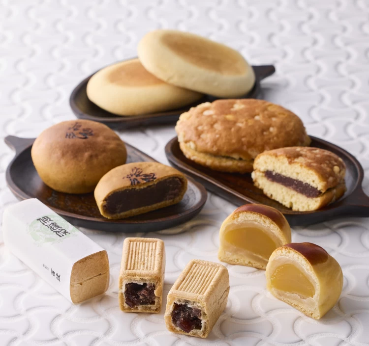 大粒小豆をふっくら炊いた自慢の粒餡を手焼きの極上加賀種に詰めた最中 「伊達侯」、しっとりした蜜を含んだ生地が人気の蜜饅頭 「蜜六(みつろく)」など。愛媛県宇和島市の老舗和菓子店「御粽司 百波」で長く愛され続けている看板商品の食べ比べをお楽しみいただけます。