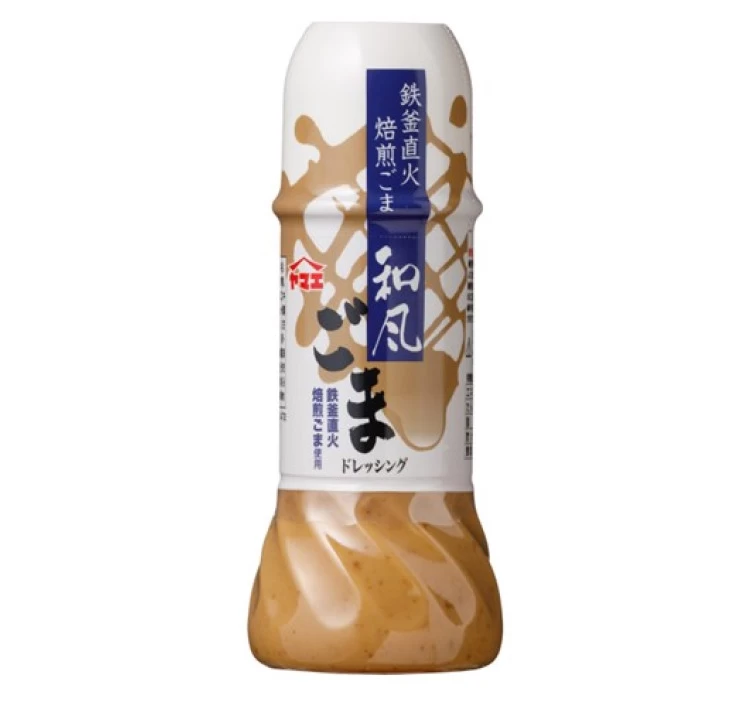 鉄窯を使用しじっくりと焙煎したスリ胡麻の香ばしい風味と、ヤマエの醤油で味を調えた和風ごまドレッシングです。 スリ胡麻のほどよい甘みとほのかな酸味は、さまざまな料理に活用できる味わいです。