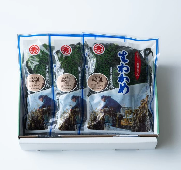 (冷蔵)岩手・川秀の味覚 塩蔵生わかめ 100g×3袋(化粧箱入り)