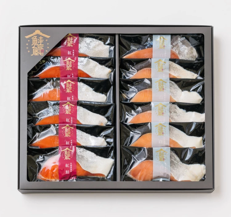 | 内容量 | 【氷蔵藁製法】紅鮭切身:6パック(1切約80g)白鮭切身:6パック(1切約80g) |