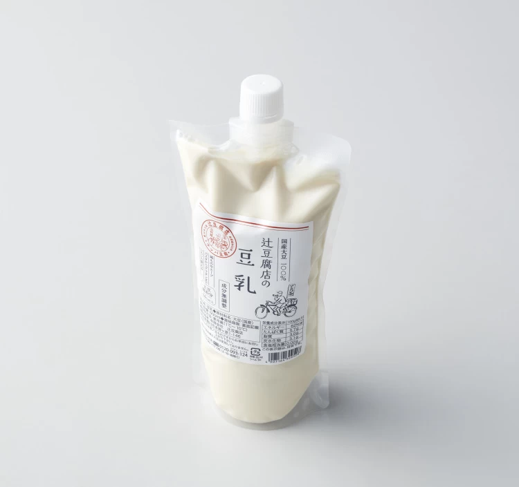創業以来、昔ながらの製法で豆腐づくりを続ける辻豆腐店。厳選した国産大豆100%を使い、お店の豆腐にも使用する濃度14度以上の搾りたて無調整豆乳です。口当たりはとてもなめらか。大豆そのものの甘味・旨味をダイレクトに感じられます。