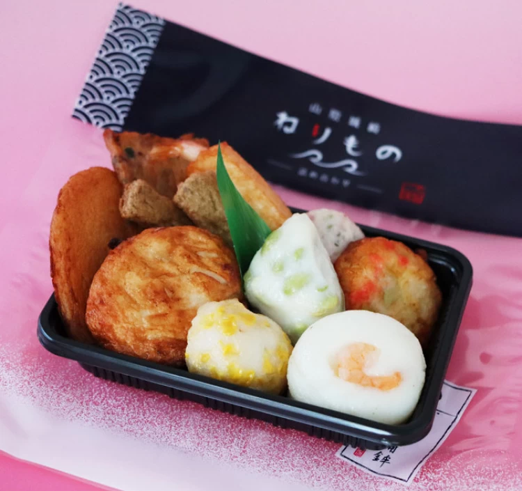 100年近く兵庫県豊岡市で愛される二方蒲鉾。直売所では揚げたてのすり身の天ぷらを購入可能です。好評につき、天ぷらをお取り寄せでき、約10日間美味しさをキープするパッケージを開発しました。人気の10品をアソートし、食べ応えも満点。