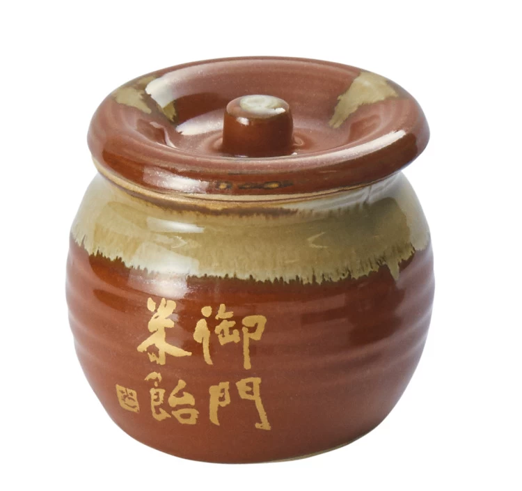 米飴は米を麦芽で糖化した古来の製法でつくられた水飴です。この米飴を気に入った東大寺の故・清水公照師が「壷に入れて広めれば奈良らしい土産になる」と御門米飴と命名されました。食べ終わったあとの壺は保存食入れ小物入れとして使えます。