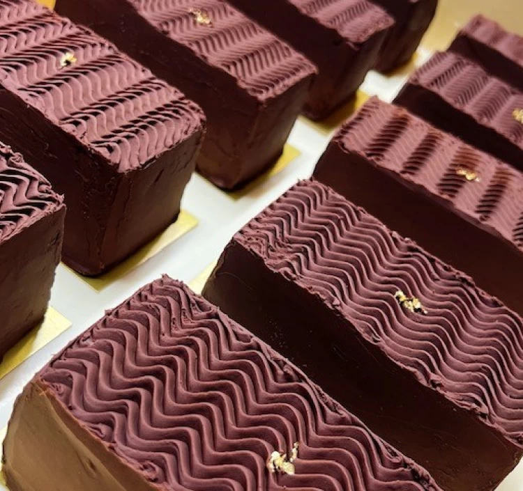 小麦粉を一切使用せず、アーモンドのみで焼き上げた濃厚なケーキ生地に、ガナシュチョコを中から表面まで贅沢にコーティング。しっとりとした食感と深いコクが広がる一品です。少しずつカットして楽しめるため、ゆっくり味わえるのも魅力。保存料不使用ながら、適切に保存すれば約1ヶ月お楽しみいただけます。桐箱入りで贈り物にもおすすめです
