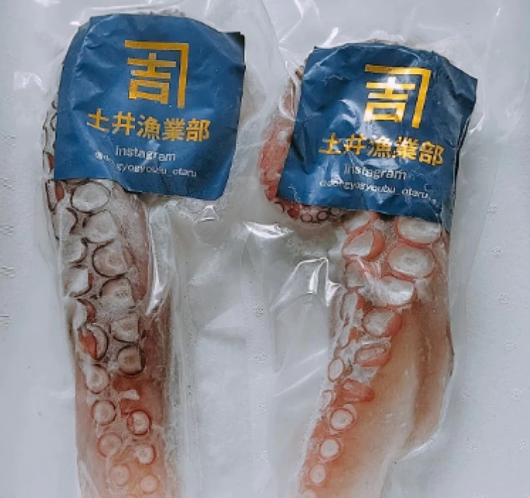 小樽の祝津沖で水揚げされた大きなタコを浜茹で。その中からとくに太くて身がしっかりとした足を選りすぐり、真空冷凍パックして届けます。弾力があり、噛むほどにタコの旨さが広がります。そのままはもちろん、さまざまな料理に使えて便利。