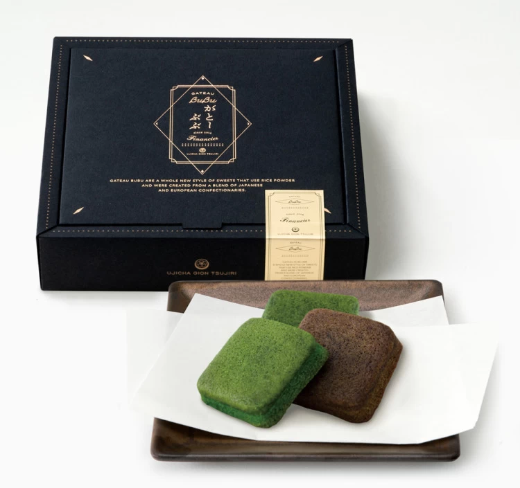 京都の方言で「お茶」を表した「ぶぶ」を商品名に冠した「和フィナンシェ」は、米粉を使って焼き上げた生地と薄いお餅のような求肥を組み合わせたもちもちの新食感。祇園辻利ならではの抹茶、ほうじ茶の味わいが楽しめる、和洋折衷のスイーツです。