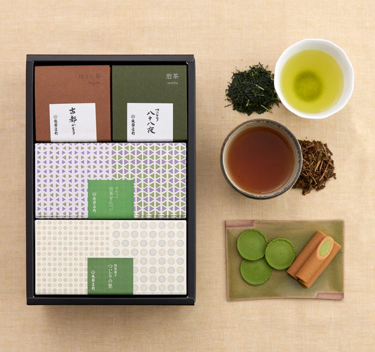1860年創業、京都・祇園の地でお茶を使ったスイーツなども展開する人気の専門店「祇園辻利」のお菓子詰め合わせセット。祇園辻利ラインナップの中でも、特に人気のお茶二種類(煎茶・ほうじ茶)に加え、抹茶菓子人気No,1の「つじりの里」や、軽くて優しい触感の「抹茶せんべい」を詰めました。
