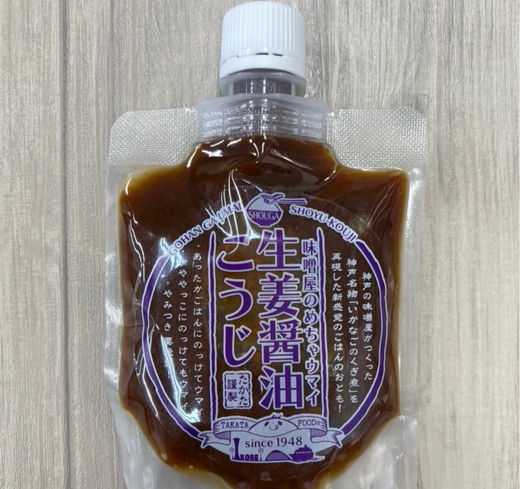 神戸の味噌屋である自社で仕込んだ米こうじと、醤油を二段階熟成により「発酵食品の旨み・甘味」を最大限に引き出した醤油こうじに、神戸の名物「いかなごのくぎ煮」の風味を再現した醤油こうじだれ。