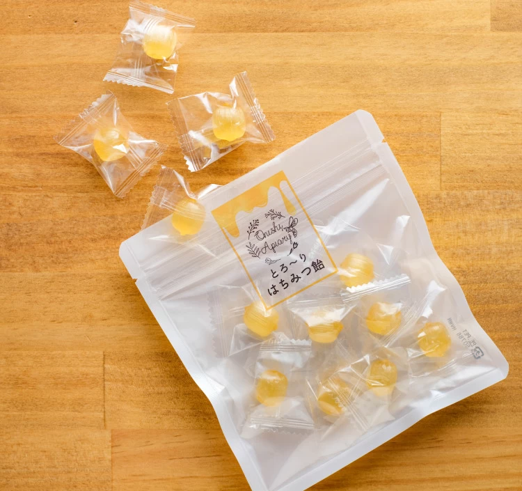 はちみつ飴を舐め進めると中からとろ~りとはちみつが。はちみつが口いっぱいに広がって、思わずにっこりしてしまうはちみつ飴。贈り物、手土産にも、ぜひ!