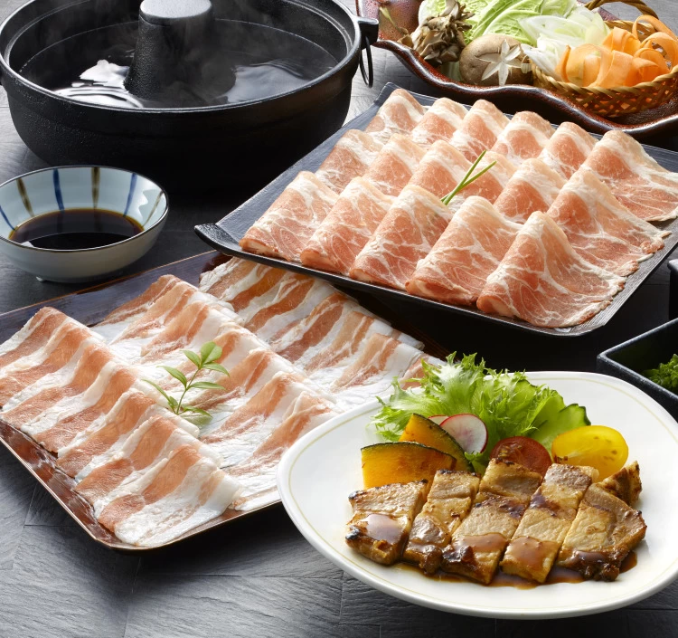 鹿児島県大隅半島にある自社農場で大切に育てた「かごしま黒豚」のみを使用した、とんかつやステーキにおすすめの「黒豚ロースカツ」と、しゃぶしゃぶの定番「黒豚肩ロースしゃぶ」「黒豚バラしゃぶ」のセット。黒豚の旨みがより引き立つ、とんかつやしゃぶしゃぶを存分に堪能しよう。