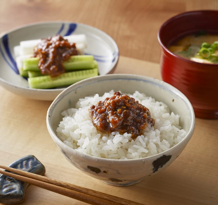 鹿児島県大隅半島に広がる自社農場で、丹精込めて育てた「かごしま黒豚」のミンチ肉を、粗めにカットして使用。黒豚本来の旨味を引き出すために、肉質にこだわり抜いたミンチ肉に、独自にブレンドしたこだわりの味噌と香辛料を絶妙に合わせ、じっくりと仕上げました。鹿児島の郷土料理の一つとして親しまれており、白ごはんとの相性は抜群。香ばしい味噌と黒豚の豊かな風味が口の中で広がり、日本の伝統的な味を、現代の食卓で楽しめる絶品の一品です。