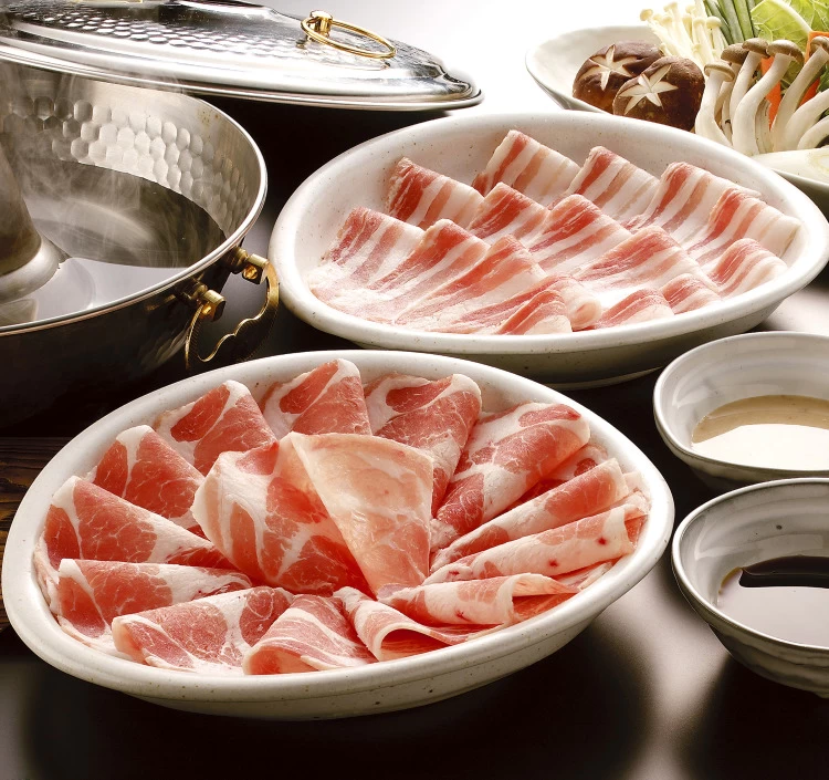 肉の繊維が細かく、保水性の高い黒豚特有の旨みを、特製ポン酢や好みの調味料にあわせてしゃぶしゃぶで堪能しよう。
