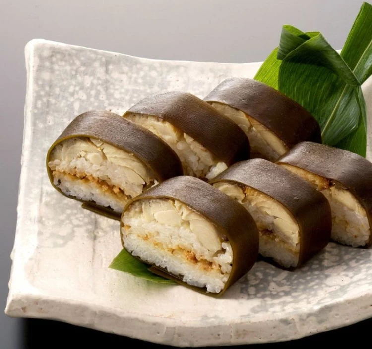 昆布で包んだ旨みたっぷりの押し寿司です。