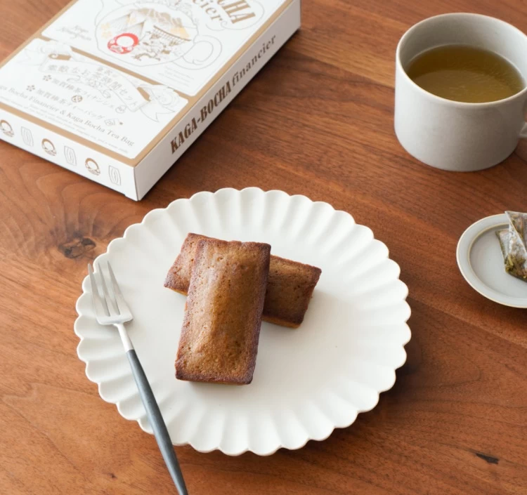 石川県で日常的に親しまれている加賀棒茶をそのまま閉じ込めたような香り高いしっとりフィナンシェと、ティーバッグのセット。