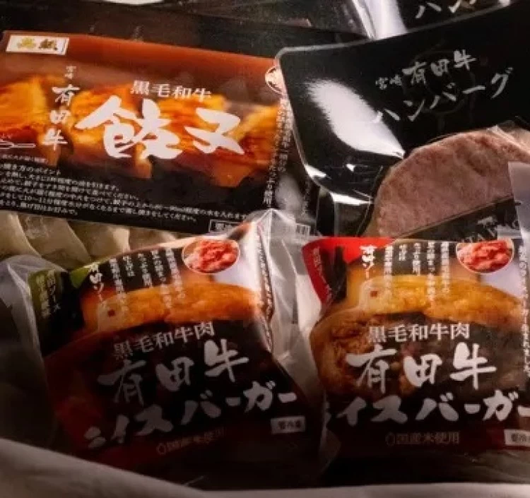 | 内容量 | ハンバーグ150g×3個、餃子12個入×2P、ライスバーガー3種各1個(有田ソース味・EMO焼肉たれ味・柚子胡椒味) |
