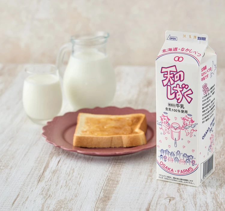 北海道・中標津町の「OSAKA FARMS」が最新の技術を駆使しながら牛の環境にこだわり抜き、生み出した「天のしずく」。原材料として高品質な生乳を100%使用し、豊かな風味と、甘さ・コクを兼ね備えた牛乳だ。飼料作りから牛の肥育、搾乳まで一貫して自家生産している。また、中温殺菌法により、牛乳本来の風味と香りが損なわれないのも美味しさの秘密。