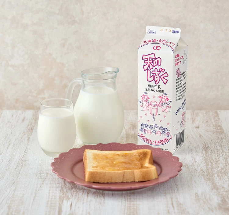 北海道・中標津町の「OSAKA FARMS」が最新の技術を駆使しながら牛の環境にこだわり抜き、生み出した「天のしずく」。原材料として高品質な生乳を100%使用し、豊かな風味と、甘さ・コクを兼ね備えた牛乳だ。飼料作りから牛の肥育、搾乳まで一貫して自家生産している。また、中温殺菌法により、牛乳本来の風味と香りが損なわれないのも美味しさの秘密。