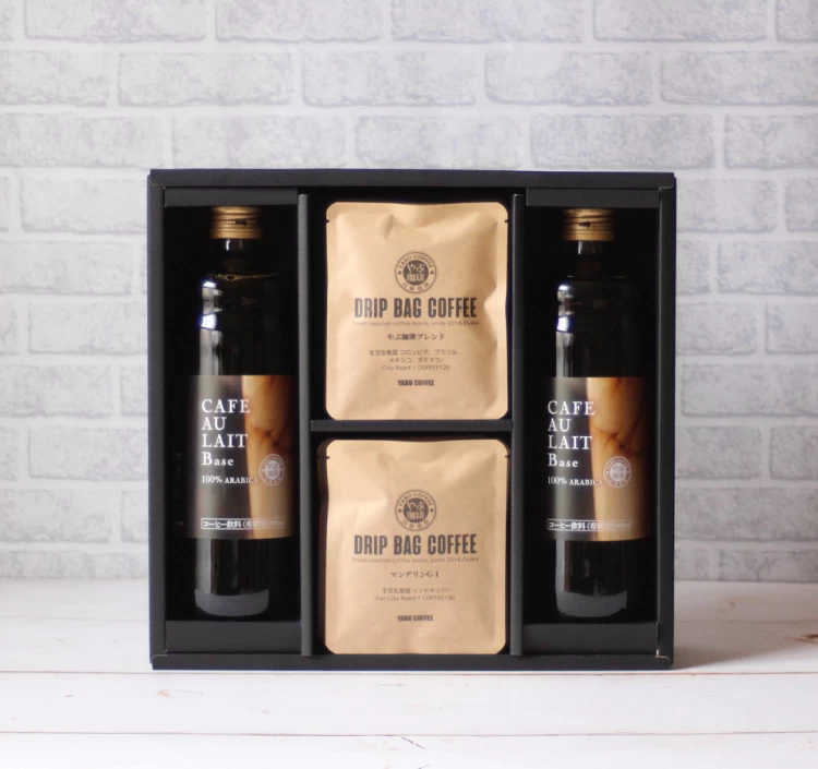 大阪生まれの珈琲豆専門店がお届けする保存料・着色料・香料不使用、こだわりのボトルコーヒーギフトです。お好みのボトルコーヒー2本、ドリップバッグコーヒー6袋がセットになったギフトにぴったりの商品。