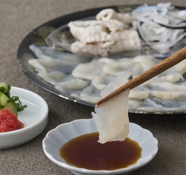 歯ごたえがくせになる甘みのあるとらふくを刺身で