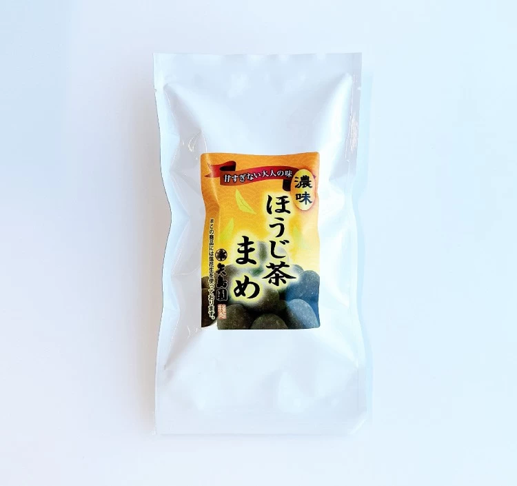 自社でつくったお茶をたっぷり使い、香ばしさをぎゅっと閉じ込めた「ほうじ茶まめ」。 甘すぎない大人の味わいと濃厚な風味が人気の茶菓子です。