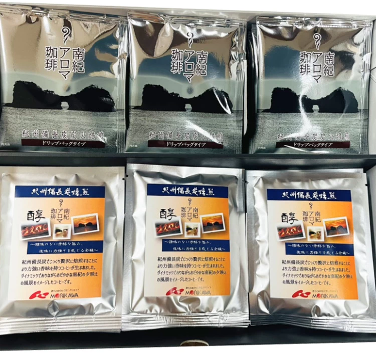 | 内容量 | 紀州備長炭炭火焙煎ドリップバッグコーヒー 「南紀アロマ珈琲」10g×15P 南紀アロマ珈琲(醇)10g×15P(計30P入) |