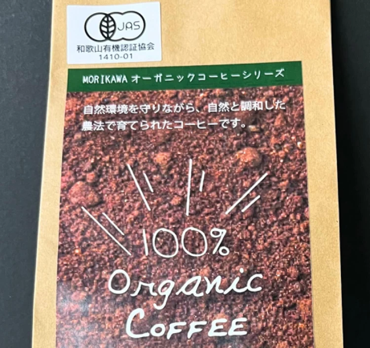 和歌山県田辺市の直営店で、1927年から茶葉とコーヒー豆の販売を手がける「モリカワ」のJAS有機認証自社工場で焙煎しています。コロンビア豆の口当たりが良く、ソフトな味わいが特徴です。